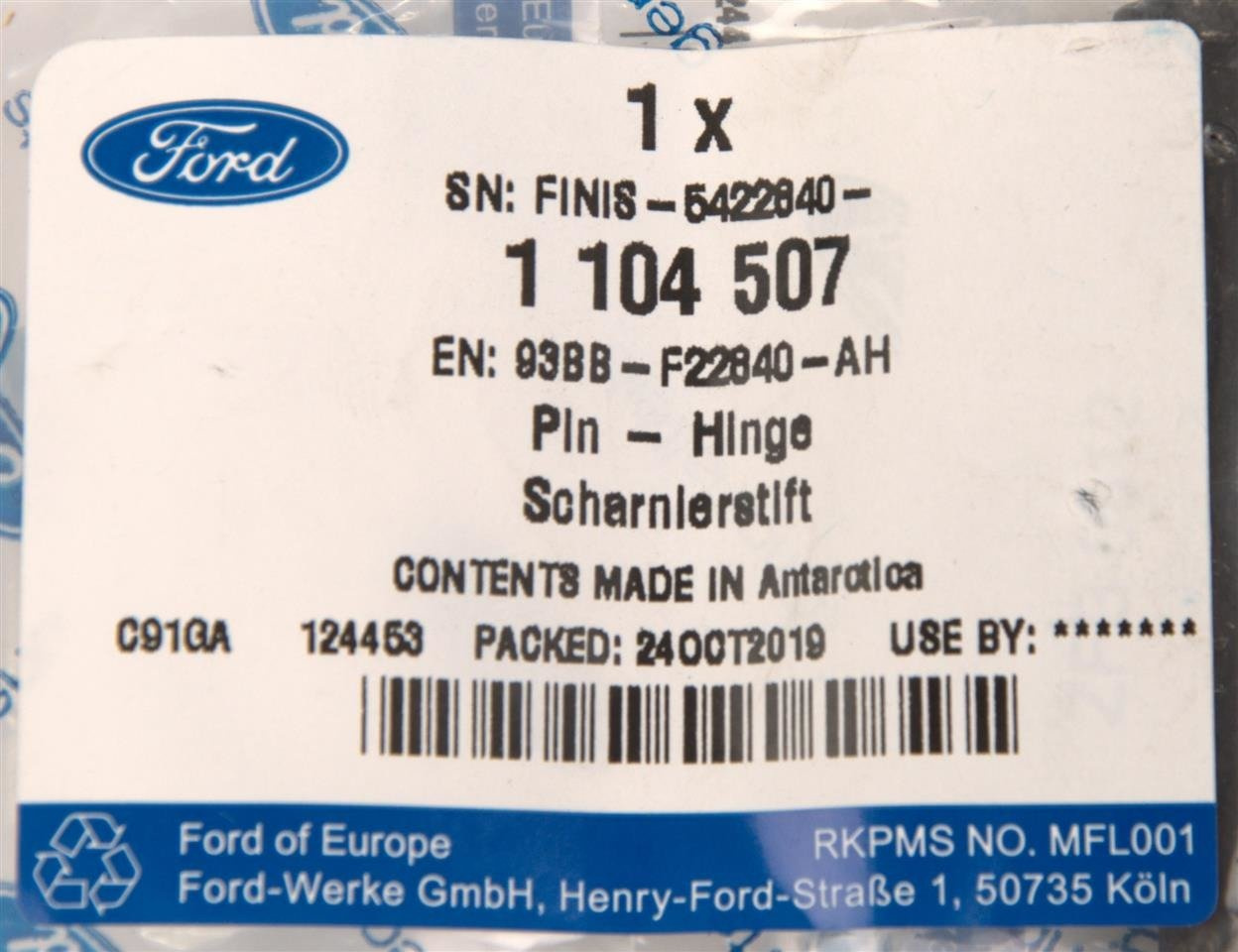 KOŁEK MOCUJĄCY ZAWIAS DRZWI FORD MONDEO 96- 00- _ 1104507 _ 93BB-F22840-AH _ GTU_07