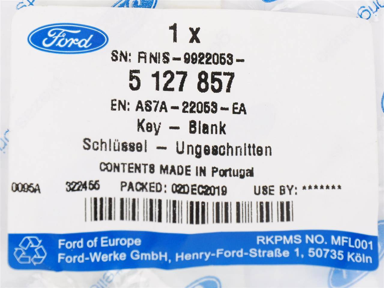 KLUCZYK NIENACIETY Z TRANSPONDEREM PATS _ 5127857 _ AS7A-22053-EA