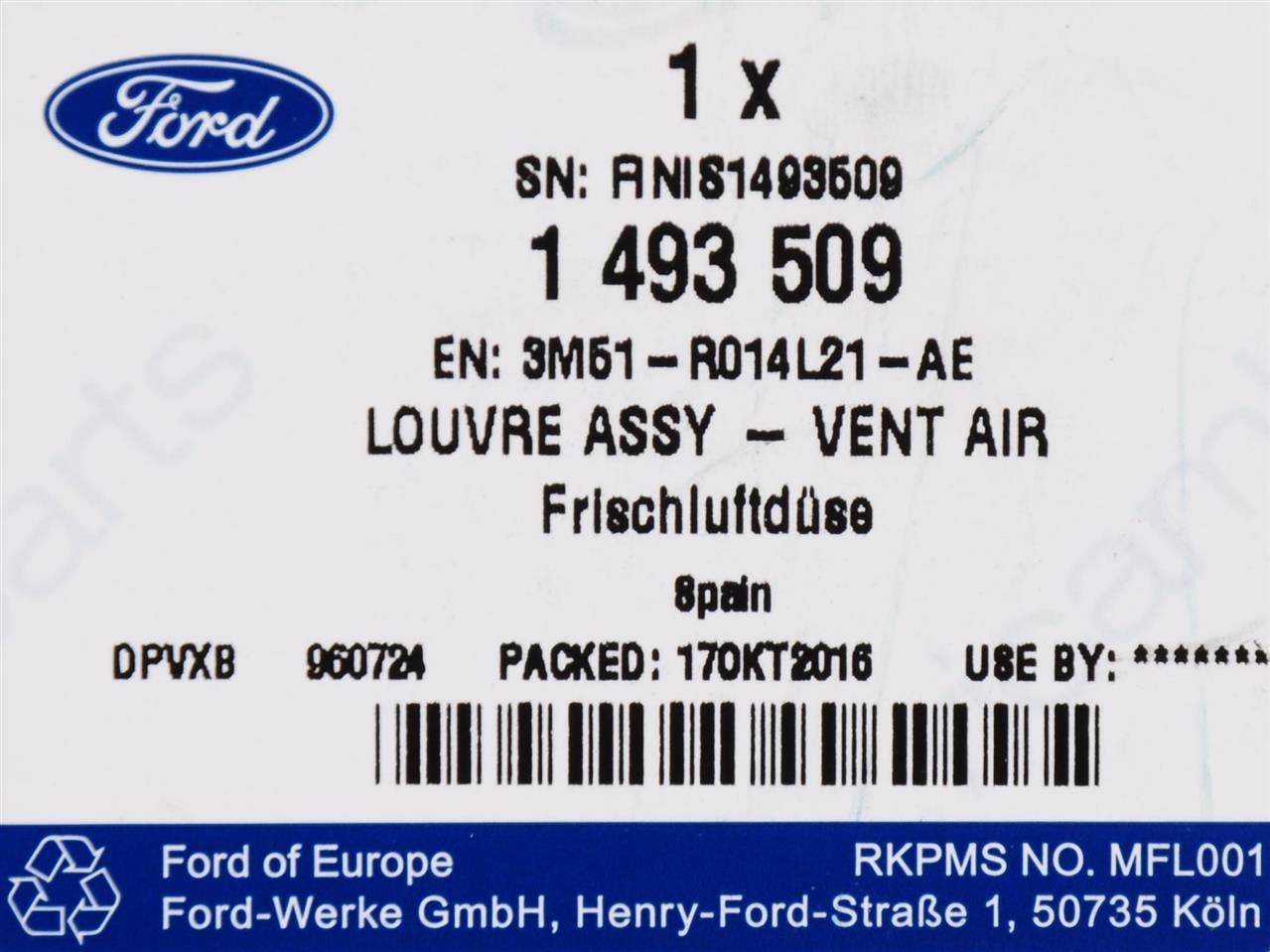 Część jest fabrycznie nowa i oryginalna marki Ford, spełniająca europejskie normy jakości i bezpieczeństwa. Dla prawidłowego działania pojazdu zaleca się montaż w autoryzowanym lub wykwalifikowanym serwisie.
