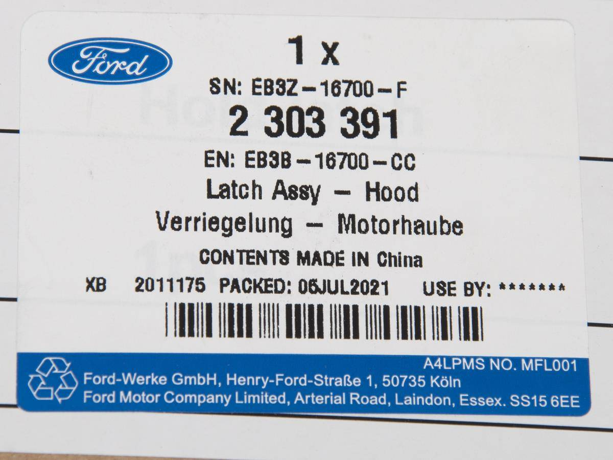 ZAMEK MASKI FORD RANGER 19- OE  _ 2303391 _ EB3B-16700-CC