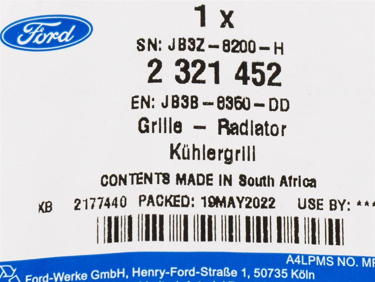 Część jest fabrycznie nowa i oryginalna marki Ford, spełniająca europejskie normy jakości i bezpieczeństwa. Dla prawidłowego działania pojazdu zaleca się montaż w autoryzowanym lub wykwalifikowanym serwisie.