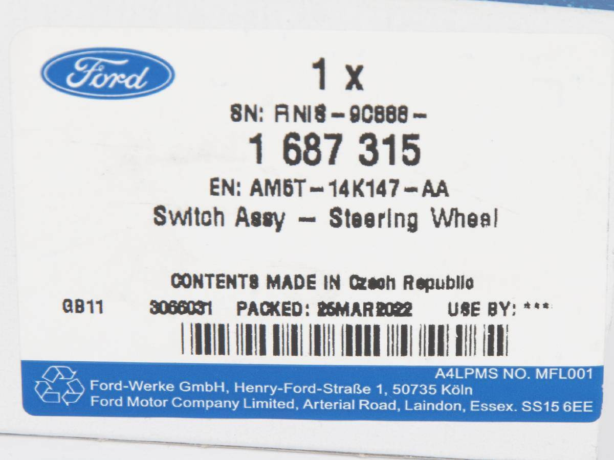 Część jest fabrycznie nowa i oryginalna marki Ford, spełniająca europejskie normy jakości i bezpieczeństwa. Dla prawidłowego działania pojazdu zaleca się montaż w autoryzowanym lub wykwalifikowanym serwisie.