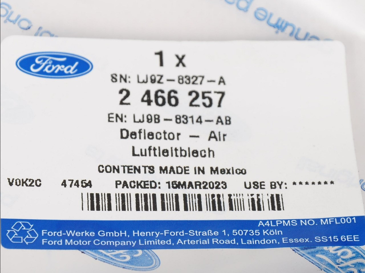 Część jest fabrycznie nowa i oryginalna marki Ford, spełniająca europejskie normy jakości i bezpieczeństwa. Dla prawidłowego działania pojazdu zaleca się montaż w autoryzowanym lub wykwalifikowanym serwisie.