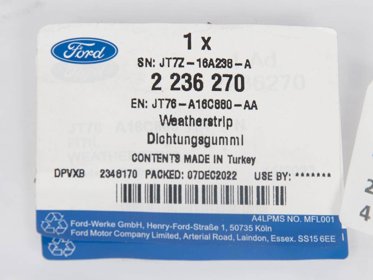 Oryginalne komponenty Ford OE skutecznie tłumią hałas, zabezpieczają wnętrze przed wodą i zanieczyszczeniami oraz wspierają utrzymanie nienagannego wyglądu kabiny. Wysoka jakość materiałów gwarantuje odporność na zużycie i warunki atmosferyczne, a dopasowanie zgodne z numerem VIN pojazdu pozwala na idealną integrację z konstrukcją auta. Dzięki temu każdy element wykończenia zachowuje estetykę i trwałość zgodną ze standardami OE.