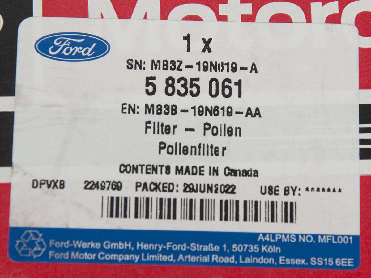 FILTR KABINOWY BRONCO 22- FORD OE _ 5835061 _ MB3B-19N619-AA _ MB3Z-19N619-A