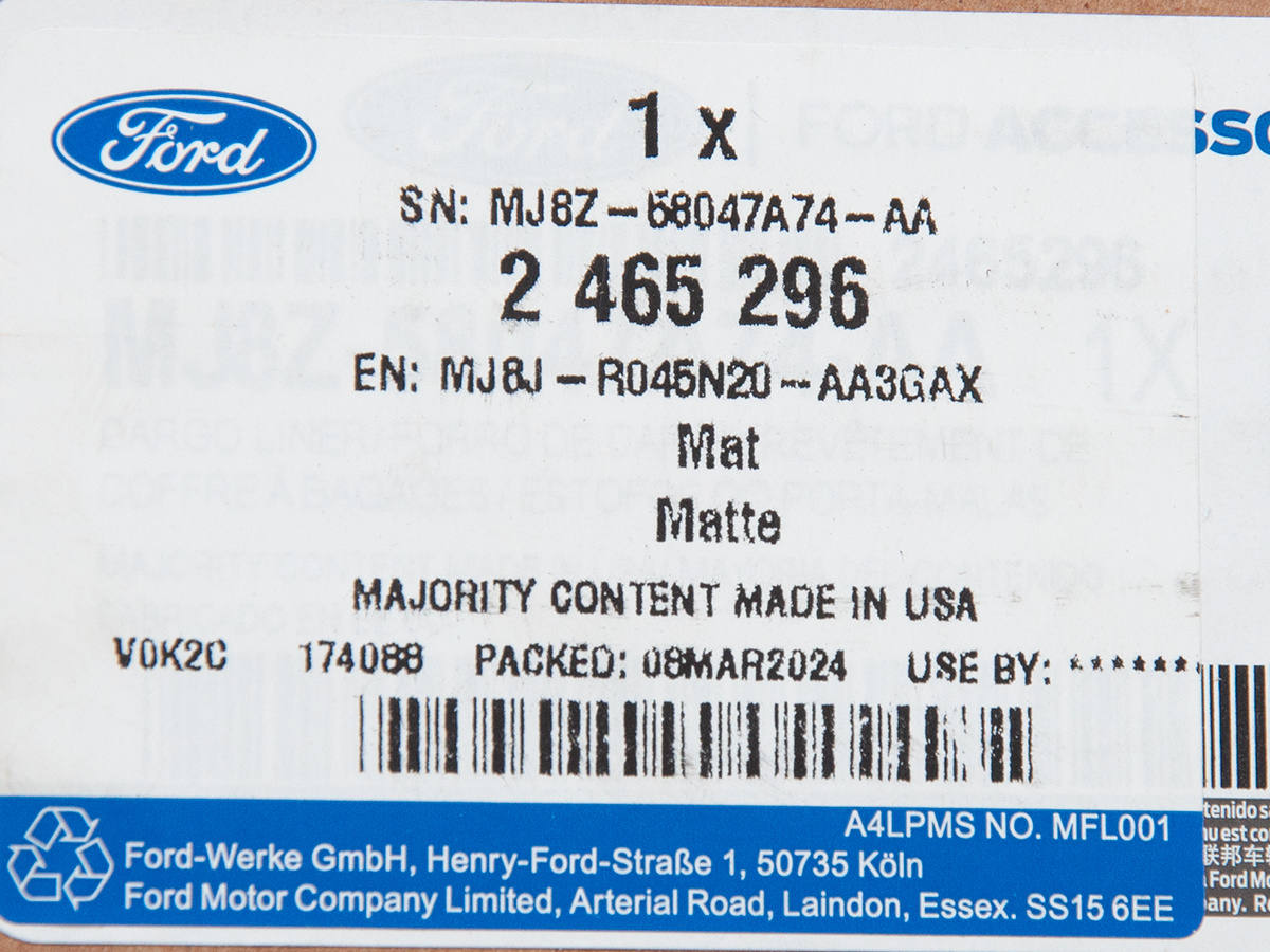 Oryginalne maty Ford OE cechują się wysoką jakością wykonania, odpornością na wilgoć i intensywne użytkowanie oraz precyzyjnym dopasowaniem do wnętrza pojazdu. Dzięki temu skutecznie chronią bagażnik, ułatwiają utrzymanie czystości i wspierają estetyczny wygląd przestrzeni ładunkowej.
