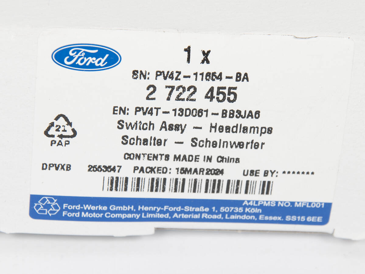 WŁĄCZNIK ŚWIATEŁ FORD KUGA 24- EUROPA _ 2722455 _ PV4T-13D061-BB3JA6