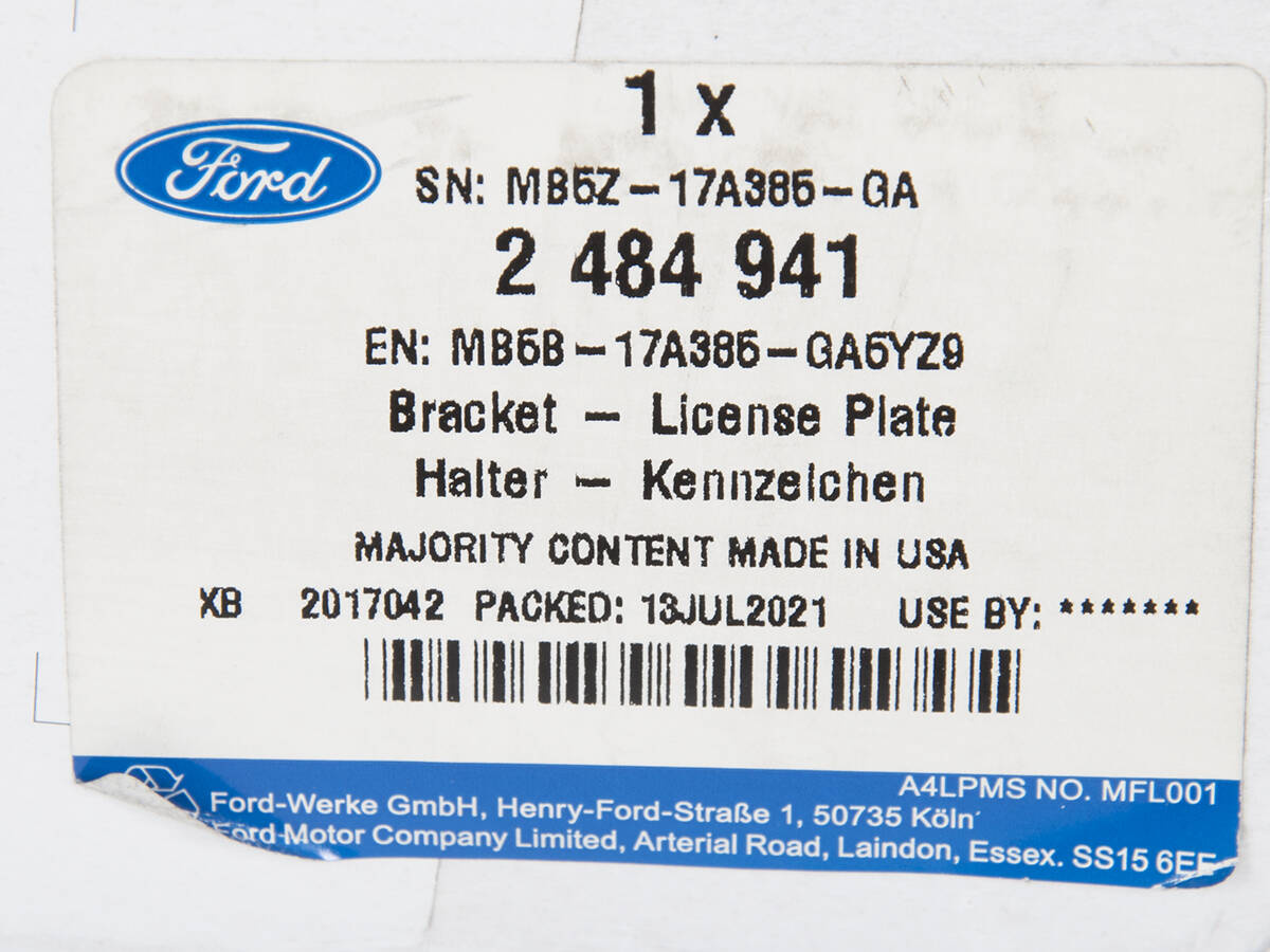 UCHWYT TABLICY REJESTRACYJNEJ PRZÓD EXPLORER USA _ 2484941 _ MB5B-17A385-GA5YZ9 _ MB5Z-17A385-GA