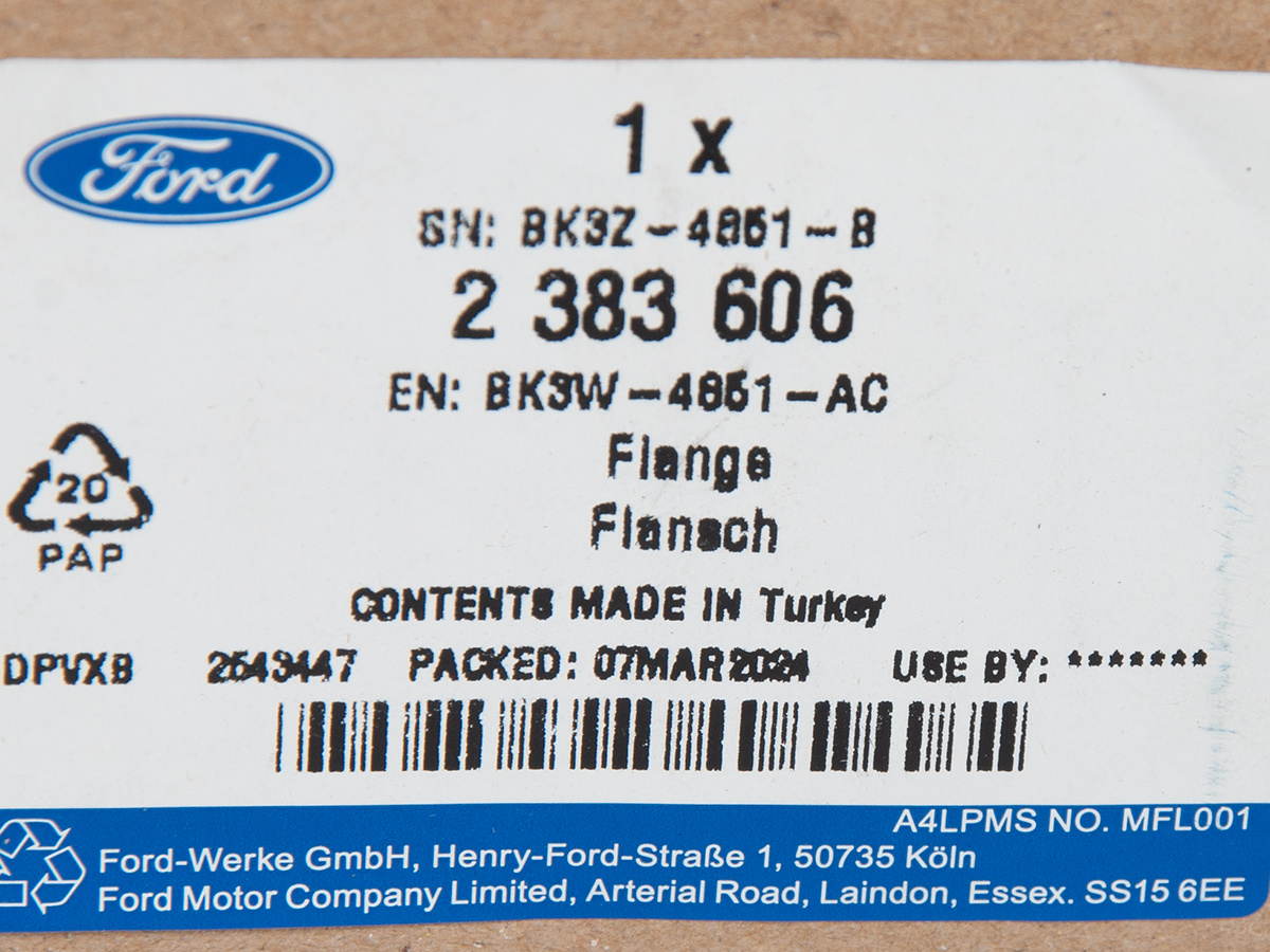Część jest fabrycznie nowa i oryginalna marki Ford, spełniająca europejskie normy jakości i bezpieczeństwa. Dla prawidłowego działania pojazdu zaleca się montaż w autoryzowanym lub wykwalifikowanym serwisie.