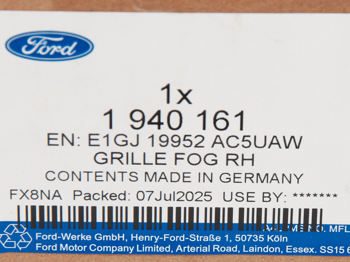 Część jest fabrycznie nowa i oryginalna marki Ford, spełniająca europejskie normy jakości i bezpieczeństwa. Dla prawidłowego działania pojazdu zaleca się montaż w autoryzowanym lub wykwalifikowanym serwisie.