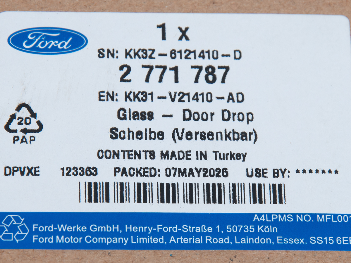 • SZYBA PRAWA DRZWI PRZÓD FORD TRANSIT 14- 19- OE