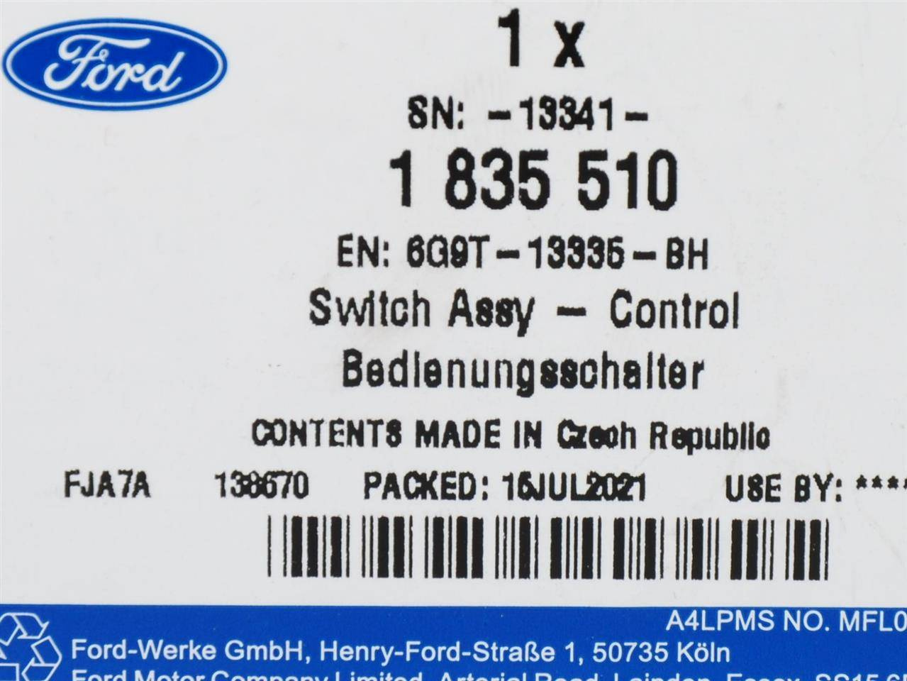 Część jest fabrycznie nowa i oryginalna marki Ford, spełniająca europejskie normy jakości i bezpieczeństwa. Dla prawidłowego działania pojazdu zaleca się montaż w autoryzowanym lub wykwalifikowanym serwisie.
